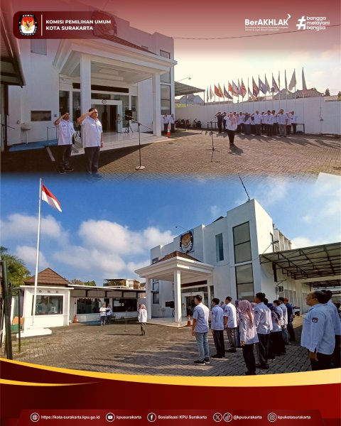 Surakarta, kota-surakarta.kpu.go.id - KPU Kota Surakarta melaksanakan kegiatan rutin Apel pagi di halaman kantor KPU Kota Surakarta. Diikuti seluruh jajaran pegawai KPU Kota Surakarta. Senin (30/03/2026) Apel pagi dipimpin oleh Ketua KPU Kota Surakarta, Yustinus Arya Artheswara. Dalam arahannya menyampaikan bahwa seluruh jajaran KPU harus dapat menerapkan kedisiplinan dalam bekerja, disiplin dapat dimulai dengan melakukan kebiasaan kecil untuk mencapai sesuatu hal yang besar selain itu juga selalu mengedepankan pelayanan kepada masyarakat dengan hati yang tulus, sesuai dengan tagline KPU yaitu KPU Melayani. Apel Pagi dilaksanakan setiap hari senin dengan tujuan dapat memulai semangat baru dalam melaksanakan tugas kinerja dengan penuh semangat dan tanggung jawab penuh. Selesai apel dilanjutkan dengan saling berjabat tangan/halal bihalal dikarenakan pada hari ini adalah hari pertama kembali masuk bersama setelah idul fitri. Dilanjutkan Rapat pleno rutin mingguan dan pekerjaan masing-masing disetiap sub bagian. (Ed:Asa/kpusurakarta) ....