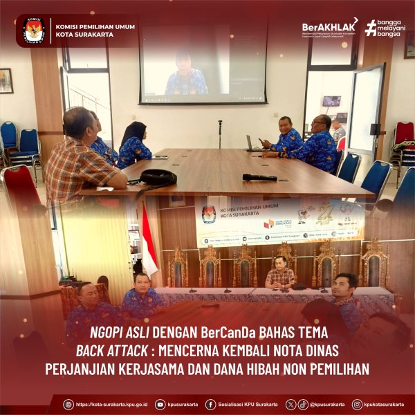 Surakarta, kota-surakarta.kpu.go.id - KPU Kota Surakarta mengikuti kegiatan daring rutin yang diselenggarakan oleh KPU Provinsi Jawa Tengah “Ngopi Asli dan BerCanDa” dengan tema Mencerna Kembali Nota Dinas Perjanjian Kerja Sama dan Dana Hibah Non Pemilihan. Selasa (17/03/2026) Kegiatan dimoderatori oleh Sabbikisma Setya N., S.E., M.M selaku Kabag Rendatin Prov. Jateng ini dibuka dengan sambutan Ketua KPU Provinsi Jawa Tengah Handi Tri Ujiono, S.Sos. Dengan hadir juga sebagai narasumber Anggota Provinsi Jawa Tengah, Drs. Basmar Perianto Amron, M.M. dan Sekretaris KPU Provinsi Jawa Tengah, Tri Ujiana, A.P., M.M. Tujuan dilaksanakan Kegiatan ini adalah Sosialisasi atau penyampaian informasi terkait Keputusan KPU No 1068 Tahun 2023 Naskah Dinas Perjanjian Kerjasama (PKS) dan Keputusan KPU No 93 Tahun 2023 yang mengatur Pedoman Perencanaan dan Penganggaran Hibah Daerah Non Pemilihan. Point yang dapat disampaikan pada kegiatan ini adalah, dalam Hibah Non Pemilihan KPU dapat merancang pada masa tahapan dengan tujuan untuk memperkukuh neutrality, profesionalisme, dan akuntabiliti KPU agar tidak timbul prasangka buruk dari pihak luar dalam penerimaan dana hibah. Dan untuk Perjanjian Kerja Sama (PKS) bahwa dalam melaksanakan Kerjasama boleh dilakukan dengan berbagai pihak yang berkaitan dengan bidang-bidang pilihan dengan fokus Kerjasama untuk sosialisasi pendidikan pengundi dan peningkatan penyertaan masyarakat dengan mengedepankan mitra Kerjasama yang berada dalam wilayah satker masing-masing. (Ed:Asa/kpusurakarta) ....
