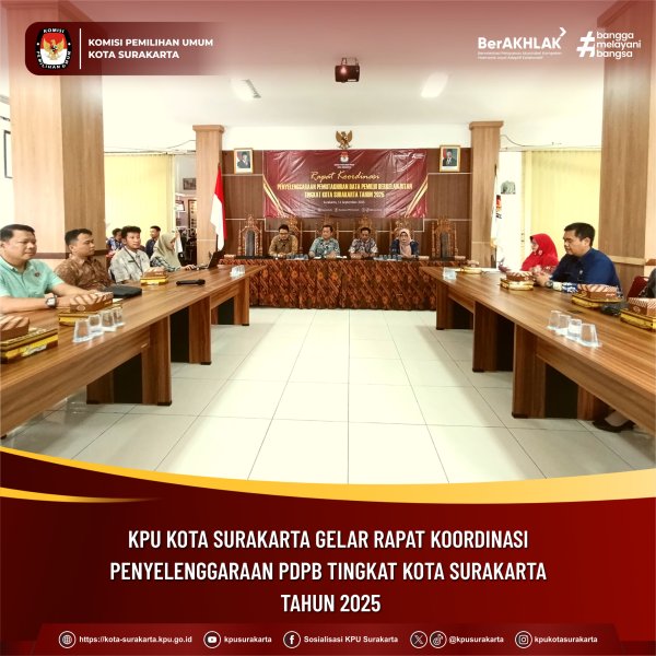 Surakarta, kota-surakarta.kpu.go.id - Komisi Pemilihan Umum Kota Surakarta menggelar Rapat Koordinasi Pemutakhiran Data Pemilih Berkelanjutan (PDPB) dengan instansi terkait di Kantor Komisi Pemilihan Umum Kota Surakarta. Kamis, (11/09/2025)