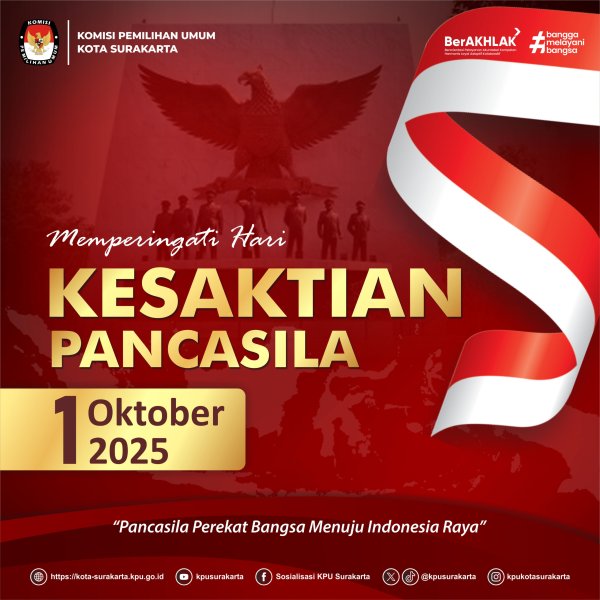 Selamat Memperingati "Hari Kesaktian Pancasila" 1 Oktober 2025. Pancasila mengajarkan kita bahwa dalam keberagaman terdapat keindahan yang harus dijaga dan dilestarikan oleh setiap generasi. Mari implementasikan Pancasila bukan hanya dalam ucapan, tetapi dalam tindakan nyata untuk kemajuan bersama. (Ed : Asa/kpusurakarta)