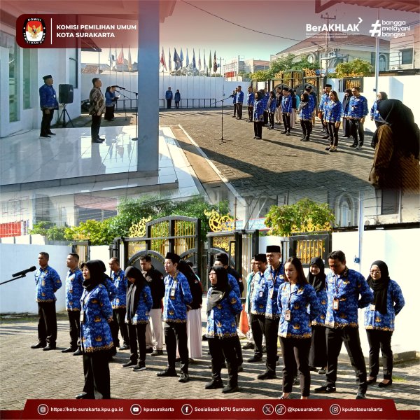 Bertindak sebagai Inspektur Upacara Ketua KPU Kota Surakarta, Yustinus Arya Artheswara dan upacara ini dihadiri oleh Anggota KPU Kota Surakarta, Plt.Sekretaris KPU Kota Surakarta sebagai komandan upacara dan diikuti oleh seluruh Jajaran sekretariat, Upacara dimulai pada pukul 08.00 WIB.