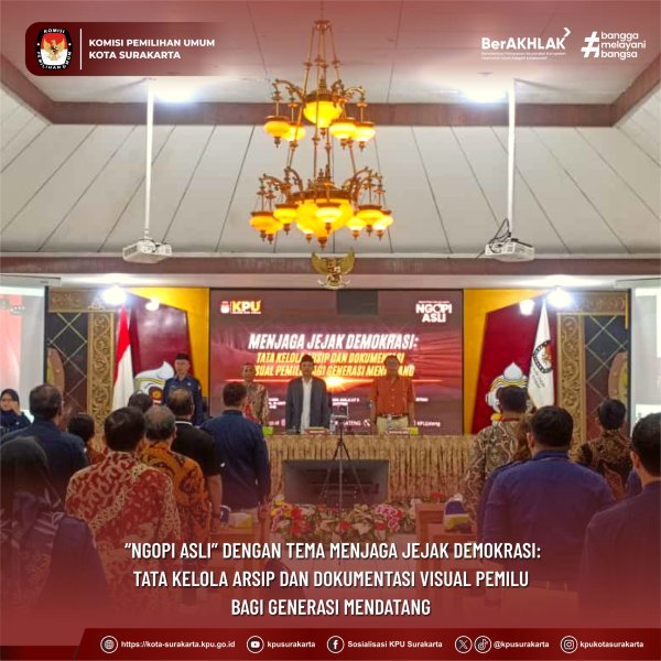 Acara dibuka oleh Bp. Handi Tri Ujiono selaku Ketua KPU Provinsi Jawa Tengah dilanjutkan dengan sambutan oleh Bp. Basmar Perianto Amron selaku Divisi Perencanaan. Tema Ngopi Asli Menjaga Jejak Demokrasi: Tata Kelola Arsip dan Dokumentasi Visual Pemilu bagi Generasi Mendatang, narasumber dari Dinas Kearsipan dan Perpustakaan Provinsi Jawa Tengah Bp. Sutarja selaku Arsiparis Ahli Madya dan dimoderatori oleh Bp. Sabbikisma Setya Nugroho (Kabag Perencanaan Data dan Informasi KPU Provinsi Jawa Tengah).