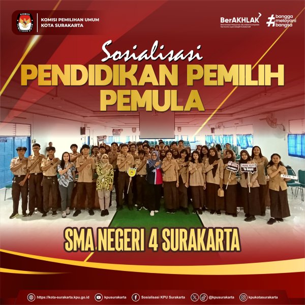 Surakarta, kota-surakarta.kpu.go.id - Komisi Pemilihan Umum Kota Surakarta melakukan Sosialisasi Pendidikan pemilih di SMA Negeri 4 Surakarta. Jumat, (07/11/2025).
