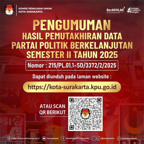 Pengumuman Hasil Hasil Pemutakhiran Data Partai Politik Berkelanjutan Semester II Tahun 2025 Nomor 215/PL.01.1-SD/3372/2/2025