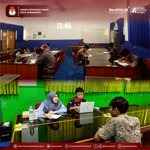 Surakarta, kota-surakarta.kpu.go.id - Komisi Pemilihan Umum Kota Surakarta melakukan pendampingan serta menjadi pewawancara dalam pemilihan bakal calon ketua dan wakil OSIS SMKN 2 Surakarta. Sabtu, (10/01/2026)
