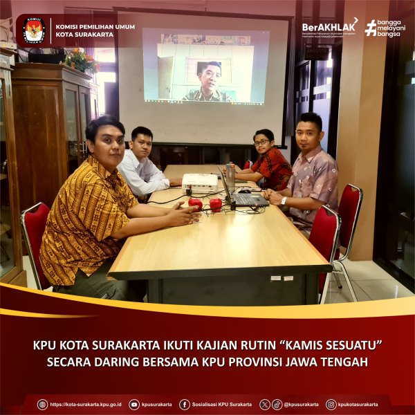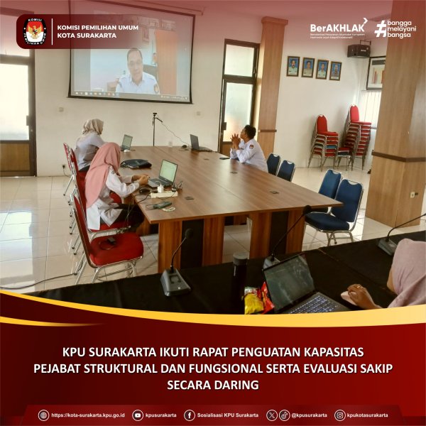 Surakarta, kota-surakarta.kpu.go.id - KPU Kota Surakarta mengikuti kegiatan yang diselenggarakan KPU RI yaitu Rapat Penguatan Kapasitas Pejabat Struktural dan Fungsional dalam Menyusun, Mengelola dan Mengevaluasi Dokumen Sistem Akuntabilitas Kinerja Instansi Pemerintah (SAKIP) Tahun 2025 melalui zoom meeting, Senin (14/7/2025)