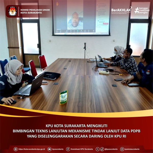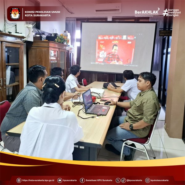 Hadir mewakili KPU Kota Surakarta, Divisi Hukum dan Pengawasan KPU Kota Surakarta, Bambang Christanto, Rois Alfianto Kasubag Teknis Penyelenggaraan Pemilu dan Hukum serta Staf Subbagian Teknis Penyelenggaraan dan Hukum Sekretariat KPU Kota Surakarta.
