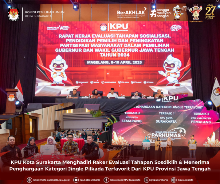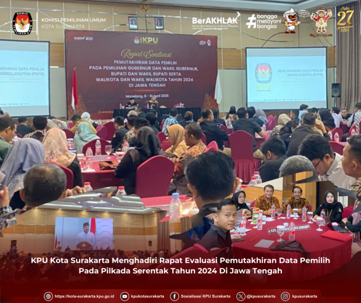 Surakarta, kota-surakarta.kpu.go.id - KPU Kota Surakarta mengikuti kegiatan Rapat Evaluasi Pemutakhiran Data Pemilih pada Pemilihan Gubernur dan Wakil Gubernur, Bupati dan Wakil Bupati serta Walikota dan Wakil Walikota Tahun 2024 yang dilaksanakan oleh KPU Provinsi Jawa Tengah. Kegiatan dilaksanakan pada 8 hingga 10 April 2025 di Hotel Atria Kota Magelang. Kegiatan ini mengundang Ketua dan Kadiv Rendatin dari 35 KPU Kabupaten/Kota se-Jawa Tengah, beserta Kasubag dan staf bagian Rendatin serta dihadiri oleh sejumlah instansi terkait yaitu Bawaslu Provinsi Jawa Tengah dan Akademisi. Perwakilan dari KPU Kota Surakarta terdiri dari Yustinus Arya Arteswara, Aldian Andrew Wirawan, Danti Martiana dan Ika Pina Yulianingsih. Dalam sambutannya Ketua KPU Provinsi Jawa Tengah Handi Tri Ujiono menekankan pentingnya evalusi Pemutakhiran Data Pemilih adalah untuk menilai, mengukur dan menentukan suatu program dan tahapan pada Pemutakhiran Data Pemilih sehingga dapat membantu mengindetifikasi masalah dan menentukan keberhasilan tahapan hingga menghasilkan rumusan - rumusan rekomendasi untuk Tahapan Pemutakhiran Data Pemilih yang akan dilaksanakan pada Pemilu maupun Pemilihan mendatang. Pada hari pertama kegiatan dilaksanakan Evaluasi Pemutakhiran Data Pemilih pada Pemilihan Gubernur dan Wakil Gubernur, Bupati dan Wakil Bupati serta Walikota dan Wakil Walikota Tahun 2024 di Jawa Tengah dengan diisi oleh 3 (tiga) narasumber dalam Diskusi Panel. Paulus Widiyantoro, Anggota KPU Provinsi Jawa Tengah menyampaikan evaluasi kegiatan pemutakhiran data pemilih yang telah dilaksanakan KPU Kabupaten/Kota di Jawa Tengah, penghargaan yang diperoleh KPU Provinsi Jawa Tengah yang merupakan hasil kerja keras KPU Kabupaten/Kota. Narasumber kedua, Nur Kholiq, Koordinator Divisi Pencegahan dan Partisimasi Masyarakat Bawaslu Provinsi Jawa Tengah membahas persoalan klise DPT yang ada dari tahun ke tahun. Di sisi lain, narasumber ketiga, Mada Sukmajati, Dosen UGM mendorong KPU untuk membuat laporan yang secara internal bisa digunakan sebagai laporan kinerja dan secara eksternal dapat digunakan oleh akademisi atau pemangku kepentingan yang lain sebagai bahan kajian. Rangkaian acara berikutnya yaitu materi mengenai Pemutakhiran Data Pemilih Berkelanjutan (PDPB) dan Capacity Building. Ketua Divisi Data dan Informasi KPU Provinsi Jawa Tengah Periode 2023-2028, Paulus Widiyantoro memaparkan PDPB yang meliputi Dasar Hukum, Prinsip Pemutakhiran Data Pemilih Berkelanjutan, Tujuan PDPB, Sasaran PDPB, Penyediaan Data Pemilih, Koordinasi dengan Instansi Terkait, Penyelenggaraan PDPB, Alur Pemutakhiran Data Pemilih Berkelanjutan, Sistem Informasi Data Pemilih, serta Pelaporan dan Pendanaan. Ed: (Asa/kpusurakarta)
