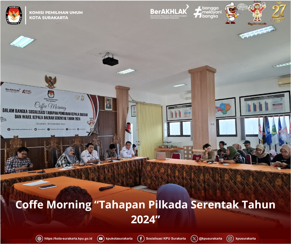 Surakarta, kota-surakarta.kpu.go.id - Komisi Pemilihan Umum (KPU) Kota Surakarta menggelar Acara Coffe Morning bersama rekan-rekan media yang ada di Kota Surakarta, Senin,30/9)
