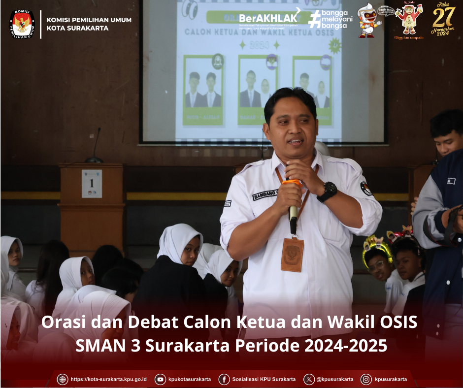 Selanjutnya Divisi Rendatin, Aldian Andrew Wirawan, Berdasarkan Keputusan Peraturan Komisi Pemilihan umum Nomor 2 Tahun 2024 tentang Tahapan dan Jadwal Pemilihan Gubernur dan Wakil Gubernur, Bupati dan Wakil Bupati, Serta Walikota dan Wakil Walikota Tahun 2024. KPU Kota Surakarta telah menetapkan Rekapitulasi Daftar Pemilih Tetap Tingkat Kota pada tanggal 18 September 2024 dengan total pemilih sebanyak 442.975 pemilih di 856 TPS. Bagi Pemilih yang tidak dapat menggunakan hak pilihnya di tempat asal, dapat melakukan pindah memilih yang akan dilayani oleh KPU Kota Surakarta mulai saat ini sampai dengan H-30 (28 Oktober 2024) untuk 9 kategori, dan pada H-7 (20 November 2024) untuk 4 kategori dengan alasan pindah memilih dan dokumen bukti dukung pindah memilih, saat ini cek status memilih dapat dilakukan secara online melalui klik https://cekdptonline.kpu.go.id/