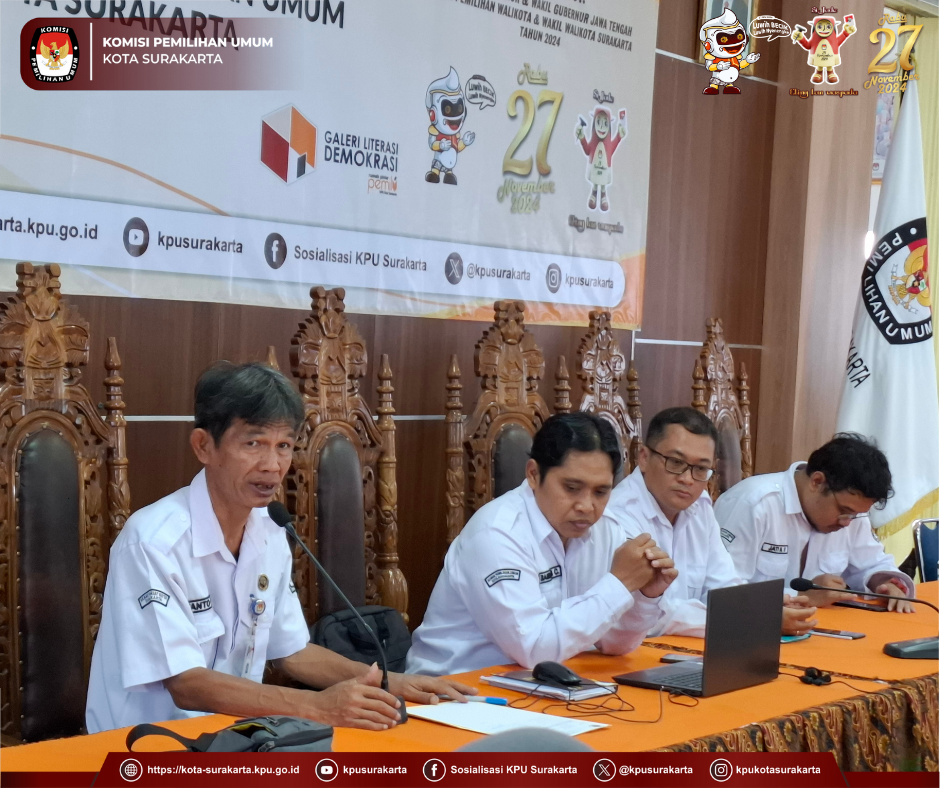 Surakarta, kota-surakarta.kpu.go.id - Komisi Pemilihan Umum (KPU) Kota Surakarta mengikuti Melakukan monitoring pelaksanaan Rapat Pleno Terbuka DPHP di tingkat Kelurahan se-Kota Surakarta, Jumat (2/8). Ketua dan Anggota,Sekretaris dan seluruh jajaran sekretariat KPU Kota Surakarta memonitoring pelaksanaan Rapat Pleno terbuka rekapitulasi DPHP (Daftar Pemilih Hasil Pemutakhiran) di tingkat kelurahan se kota surakarta. Dibagi menjadi 5 kelompok komisioner beserta staf sekretariat melakukan monitoring sesuai dengan korwil masing-masing. Ketua Divisi Rendati, Aldian Andrew Wirawan melakukan monitoring di wilayah Kelurahan-kelurahan yang ada di Kecamatan Laweyan “Saat ini dilkasanakan Pleno Rekapitulasi DPHP di tingkat Kelurahan, kami melakukan monitoring pelaksanaan pleno agar kita mengetahui jika ada kendala-kendala yang dialami oleh PPS maka kami dapat memberikan solusi terbaik, namum kami berharap Pleno tingkat Kelurahan ini berjalan dengan lancer tanpa ada suatu kendala apapun”. Ujar Aldian. Monitoring pelaksanaan ini bertujuan untuk memberikan motivasi kepada PPS dan PPK se-Kota Surakarta dalam melaksanakan tahapan Pilkada Serentak Tahun 2024. (Ed:Asa/kpusurakarta)