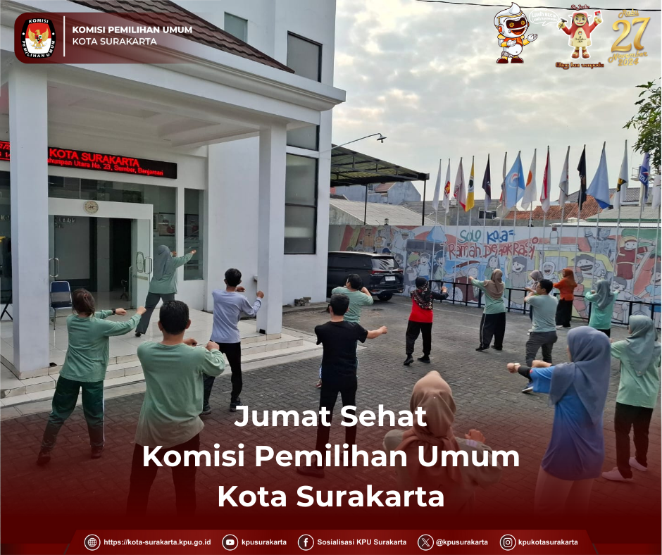 Surakarta, kota-surakarta.kpu.go.id - Komisi Pemilihan Umum (KPU) Kota Surakarta mengadakan kegiatan Senam sehat di lingkungan Kantor KPU Kota Surakarta bersama seluruh Komisioner dan jajaran sekretariat, Jumat (26/7). Sekretaris KPU Kota Surakarta, Tantowi Nurdin mengajak seluruh staf sekretariat untuk ikut aktif berpartisipasi meramaikan kegiatan ini. Kegiatan yang dilaksanakan di lingkungan kantor KPU Kota Surakarta bertujuan untuk membangun kebersamaan dan kekompakan serta menjaga kebugaran untuk seluruh pimpinan beserta staf. “Setiap jumat pagi kita melakukan kegiatan rutin olahraga bersama yaitu senam sehat di halaman kantor. Seperti biasa setelah senam biasanya kami bergotong royong melakukan kerja bakti bersih-bersih dilingkungan kantor, kagiatan rutin ini kita lakukan untuk membangun rasa kebersamaan satu sama lainselain itu juga menjaga kesehatan tubuh kita”. ujar Nurdin. Selanjutnya, selesai senam sehat dan kerja bakti dilanjutkan dengan ramah tamah berkumpul dan makan bersama dengan hidangan sederhana yang telah di siapkan sebelum melanjutkan pekerjaan masing-masing.(Ed:Asa/kpusurakarta)