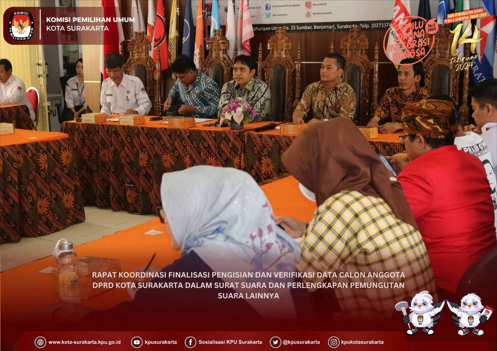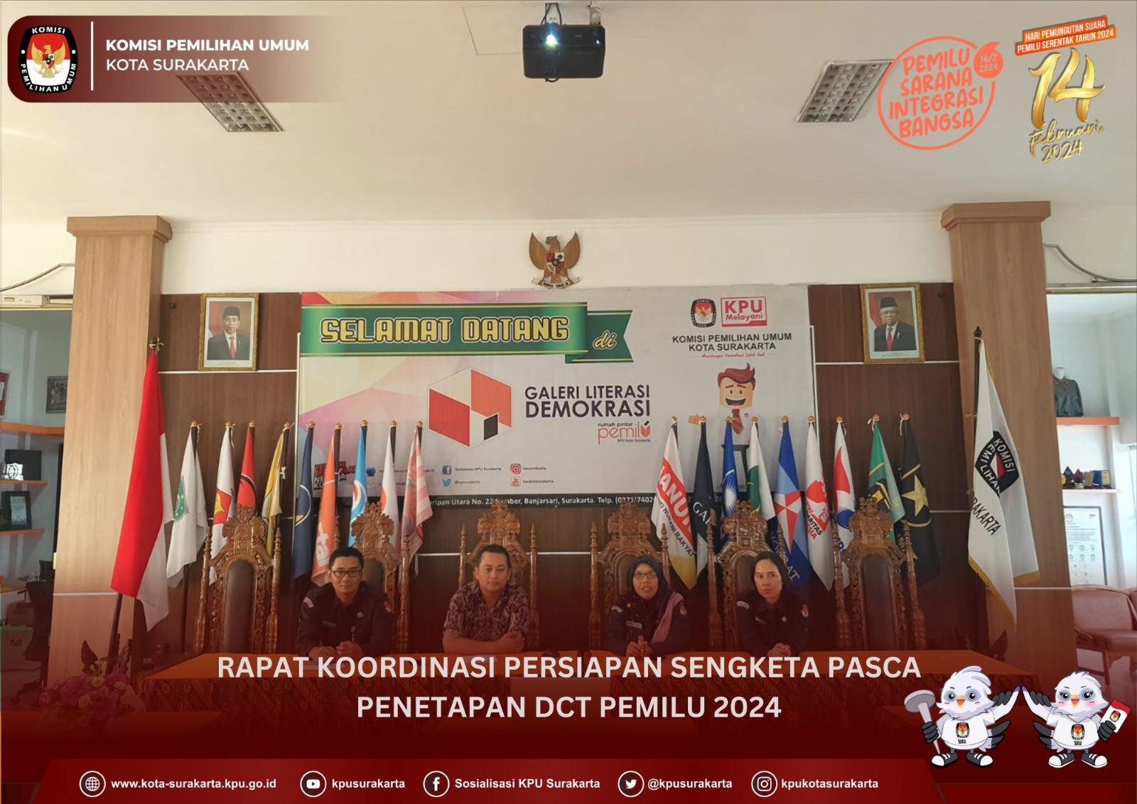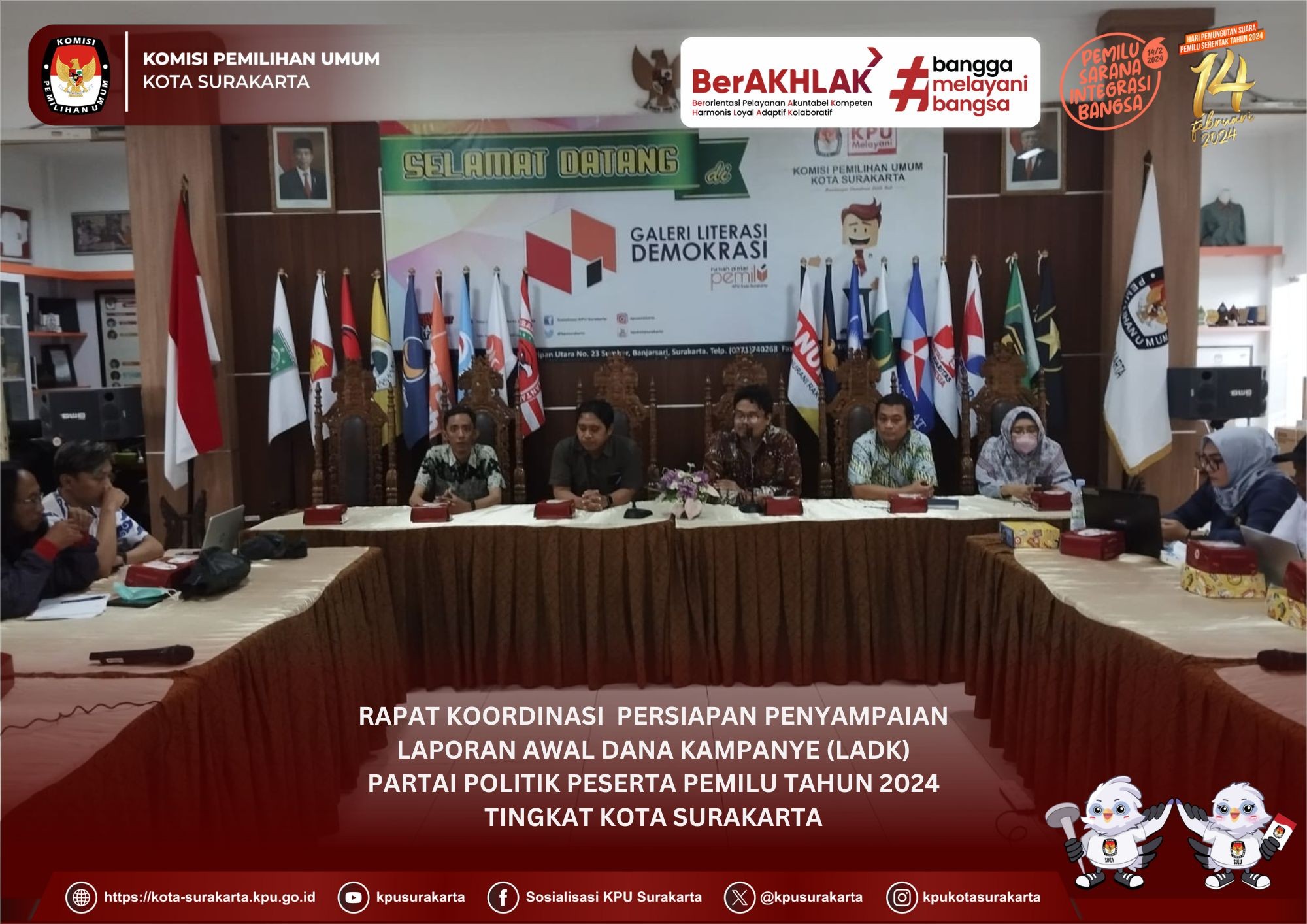 Rabu, 3 Januari 2024, bertempat di Aula kantor KPU Surakarta, KPU Kota Surakarta menggelar agenda "Rapat Koordinasi Persiapan Penyampaian Laporan Awal Dana Kampanye (LADK) Partai Politik Peserta Pemilu Tahun 2024 Tingkat Kota Surakarta", pada acara tersebut dihadiri oleh Perwakilan Partai Politik peserta Pemilu tingkat Kota Surakarta. Tujuan dari diadakannya acara tersebut adalah untuk mengetahui kesiapan partai politik untuk tahapan penyampaian Laporan Awal Dana Kampanye (LADK).