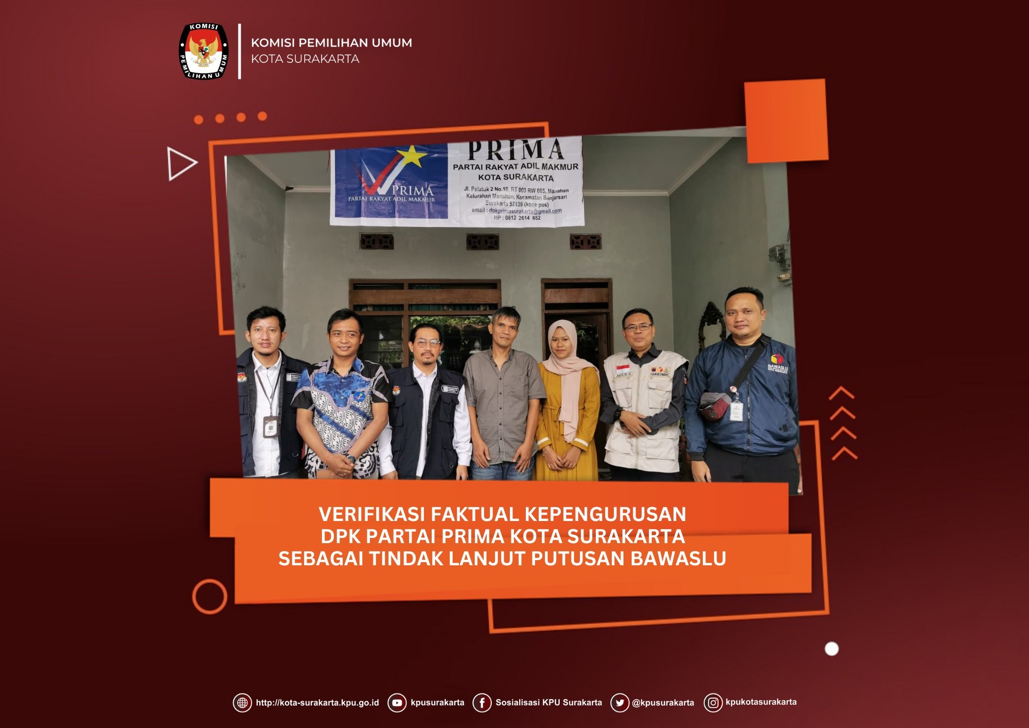 Divisi Teknis Penyelenggaraan Pemilu, Suryo Baruno memimpin pelaksanaan Verifikasi Faktual Kepengurusan Partai Politik Tingkat Kota Surakarta Calon Peserta Pemilu Tahun 2024 ke Kantor DPK Partai Rakyat Adil Makmur (PRIMA), sebagai bagian tindak lanjut pasca putusan Bawaslu.