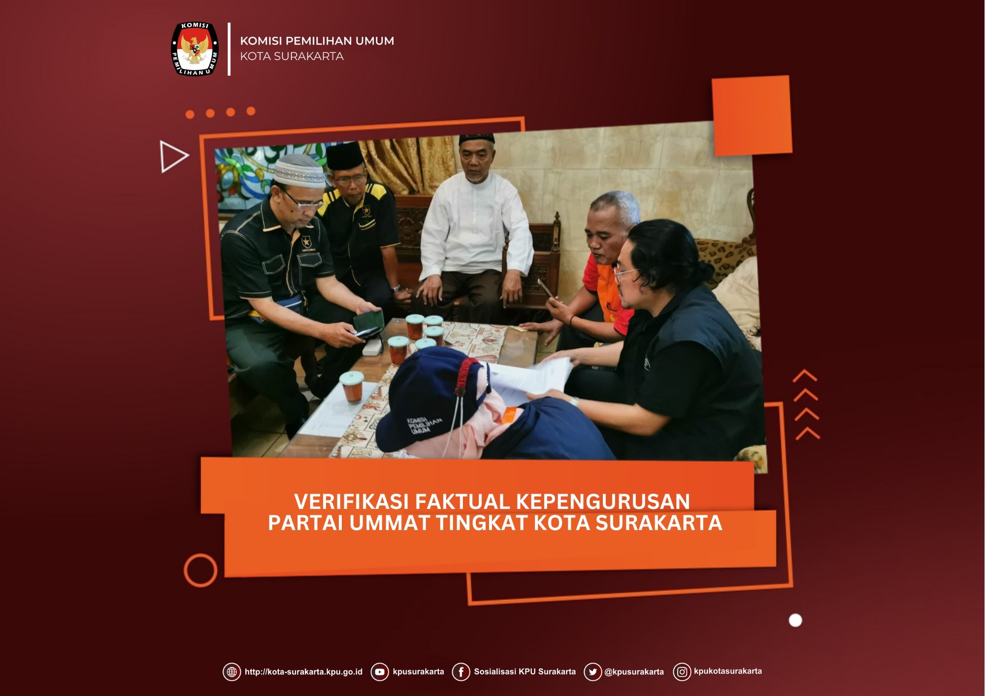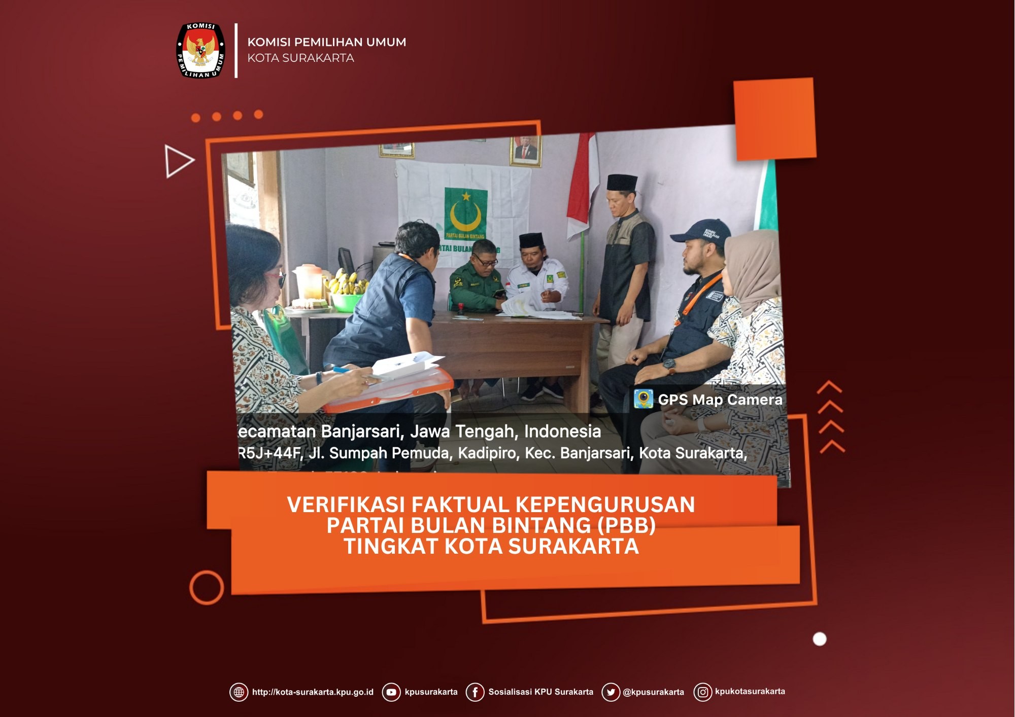 KPU Kota Surakarta melaksanakan Verifikasi Faktual Kepengurusan Partai Politik Calon Peserta Pemilu 2024 ke kantor Partai Bulan Bintang (PBB) Tingkat Kota Surakarta, dipimpin Ketua dan Anggota KPU Kota Surakarta, Nurul Sutarti, Puji Kusmarti dan Bambang Christanto, Minggu (23/10/2022).
