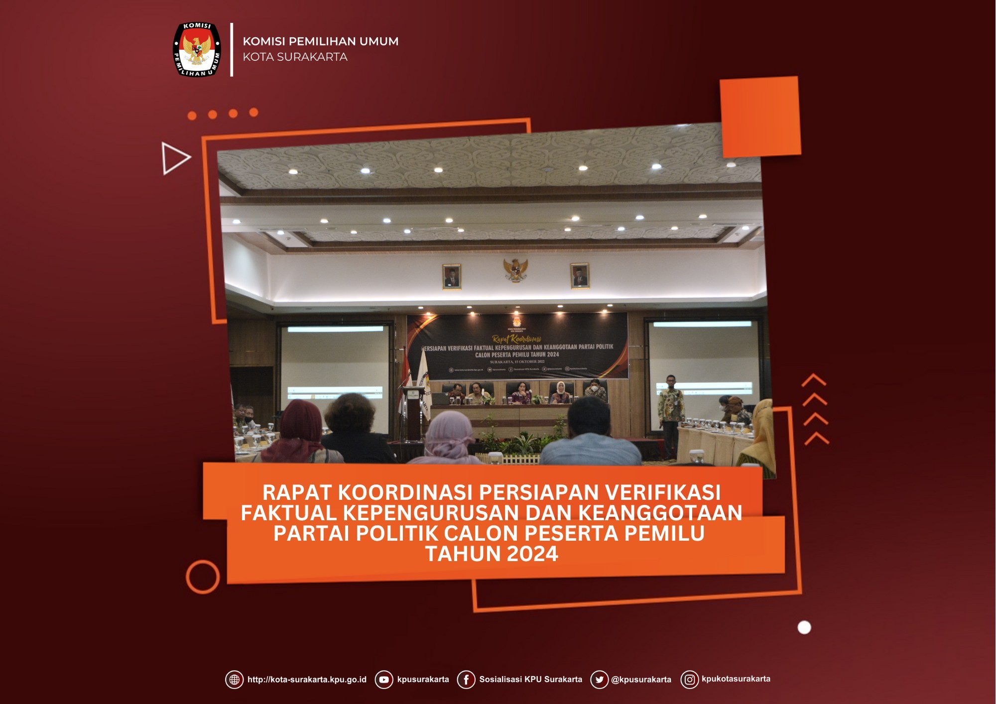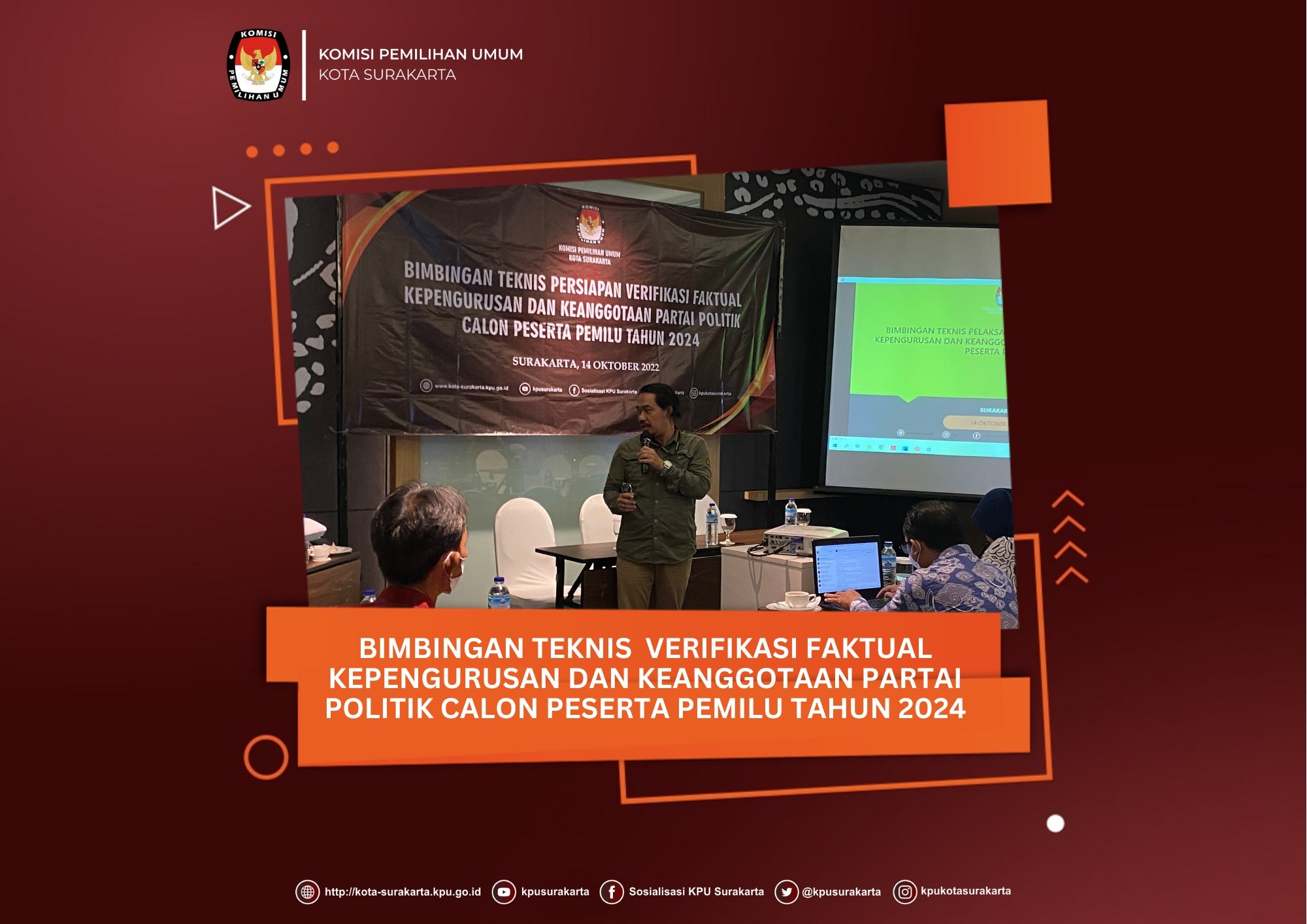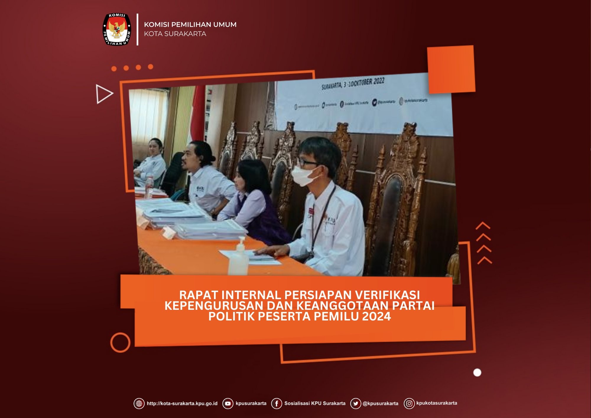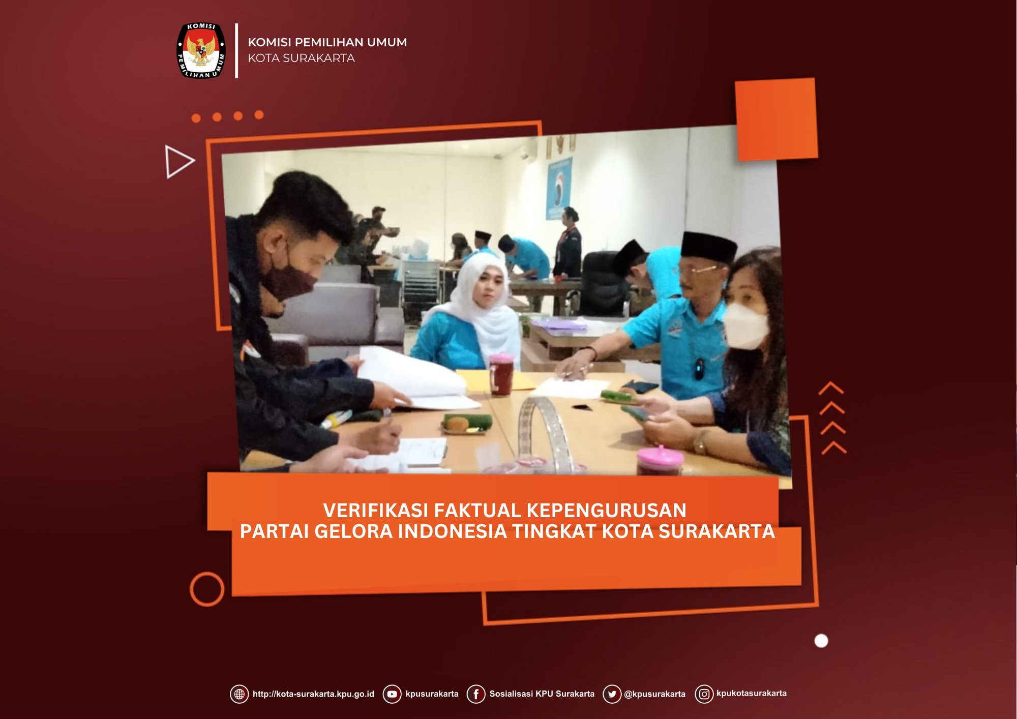 KPU Kota Surakarta melaksanakan Verifikasi Faktual Kepengurusan Partai Politik Calon Peserta Pemilu 2024 ke kantor Partai Gelombang Rakyat Indonesia (Gelora Indonesia) Tingkat Kota Surakarta, dipimpin Anggota KPU Kota Surakarta, Kajad Pamuji Joko Waskito dan Suryo Baruno, Rabu (19/10/2022).