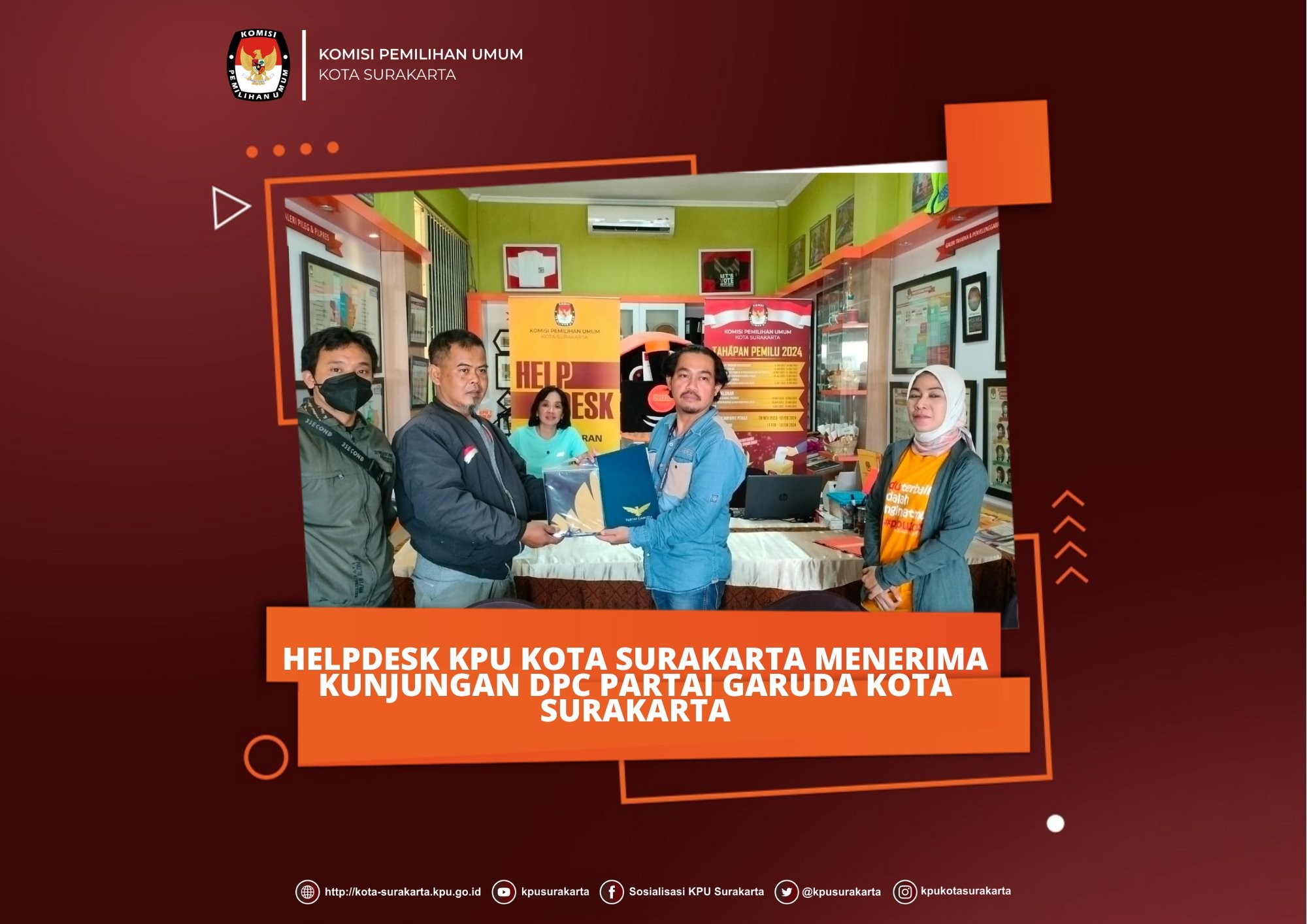 Selama periode ini, tim helpdesk telah menerima kunjungan dari Partai Garuda tingkat Kota Surakarta. Namun sebelum tanggal 1 Agustus 2022, beberapa parpol lain telah terlebih dahulu melakukan kunjungan ke KPU Kota Surakarta.