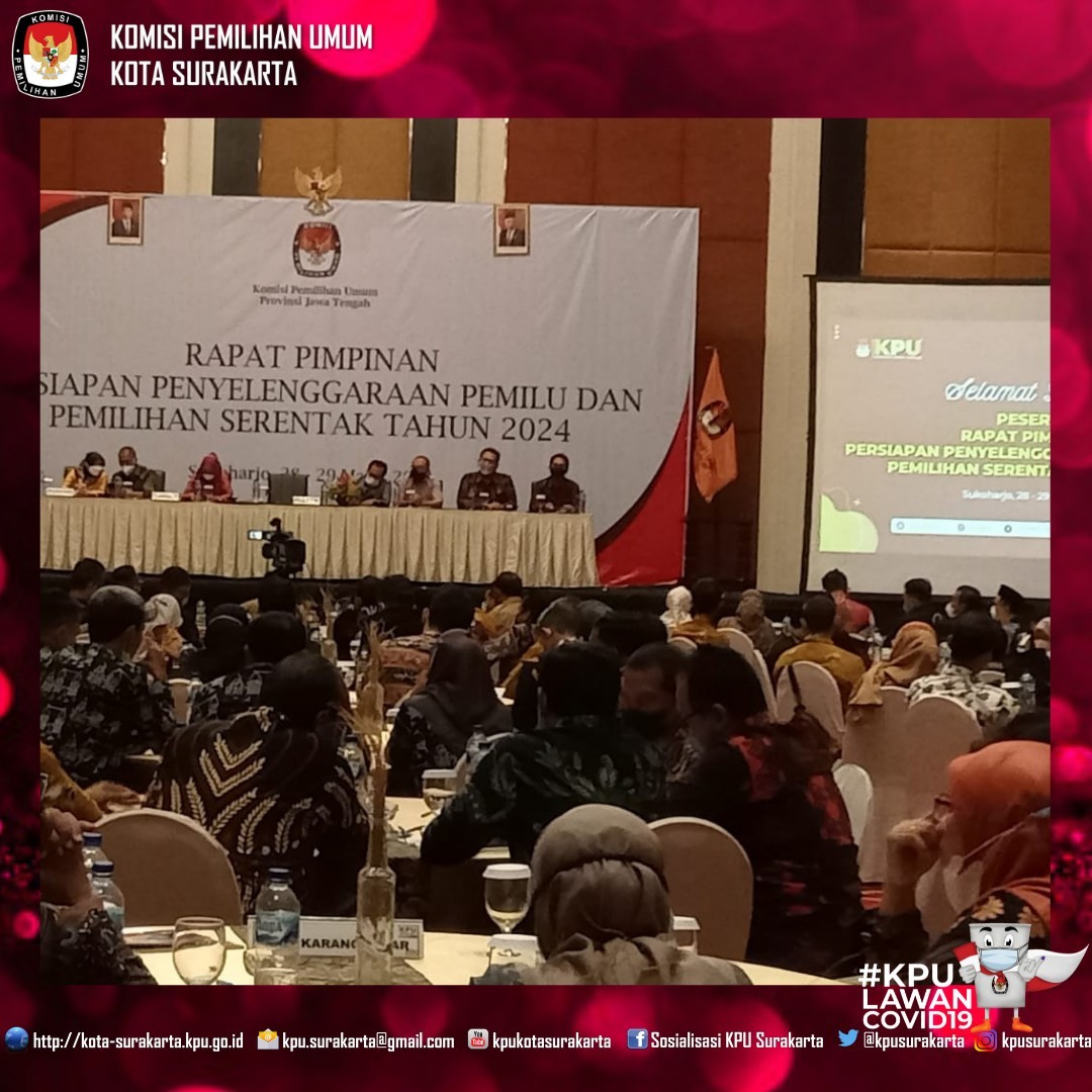 Plh Ketua KPU Kota Surakarta, Kajad Pamuji Joko Waskito menghadiri undangan Badan Kesatuan Bangsa dan Politik Provinsi Jawa Tengah dalam kegiatan Penguatan Sistem Implementasi Pemilu dan Pilkada yang bertajuk “Kesiapan Menghadapi Pemilu dan Pilkada 2024”, Selasa (22/3).