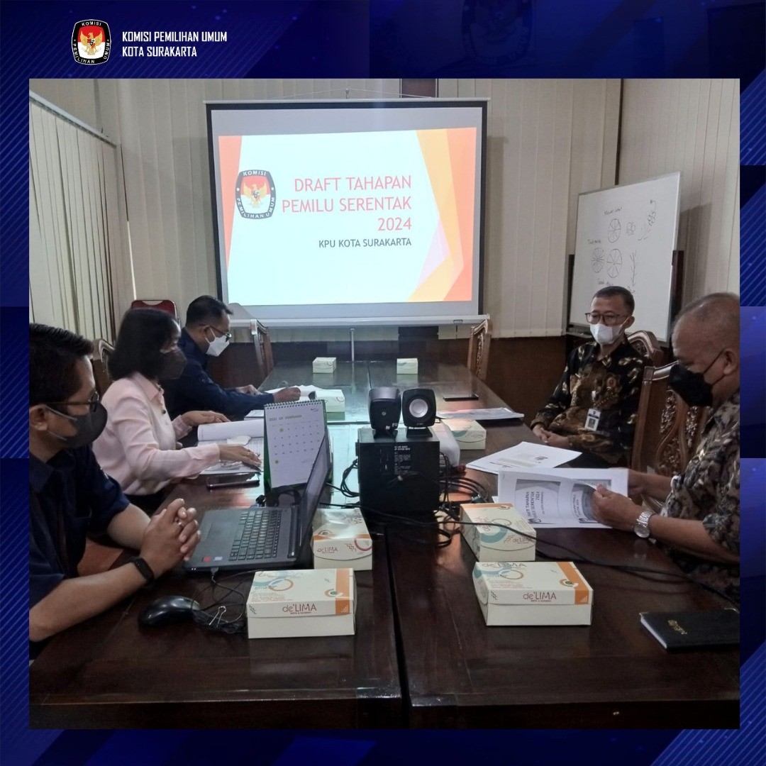 KPU Kota Surakarta melakukan audiensi terkait dengan rencana pemekaran wilayah administrasi Kota Surakarta, Selasa (15/2). Bertempat di ruang rapat Bagian Tata Pemerintahan Setda Kota Surakarta, rapat juga diikuti oleh Badan Kesbangpol Kota Surakarta, Camat Laweyan dan Jebres serta Lurah Pajang, Mojosongo dan Jebres.