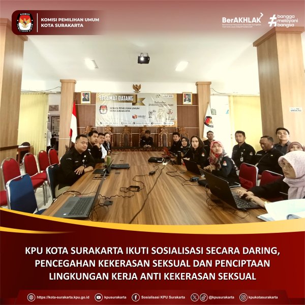 Surakarta, kota-surakarta.kpu.go.id – Komisi Pemilihan Umum (KPU) Provinsi Jawa Tengah mengundang Komisi Pemilihan Umum (KPU) Kabupaten/Kota se- Jawa Tengah melalui zoom meeting untuk mengikuti kegiatan rutin Divisi SDM Sosialisasi Pencegahan Kekerasan Seksual, Sosialisasi seri ke III ini mengangkat Tema “ Kekerasan Seksual dan Penciptaan Lingkungan Kerja Anti Kekerasan Seksual”, Sosialisasi dilaksanakanpada hari Rabu (06/08/2025).