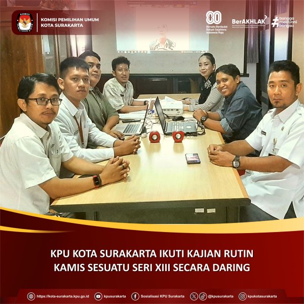 Zoom Meeting ini dilaksanakan dengan mengundang seluruh Anggota, Sekretaris, Pejabat Struktural dan Seluruh Pegawai KPU Kabupaten/Kota se- Jawa Tengah. Komisi Pemilihan Umum (KPU) Kota Surakarta turut hadir dalam kegiatan tersebut di Aula Kantor Komisi Pemilihan Umum (KPU) Kota Surakarta, selain melalui daring kegiatan ini juga dapat diikuti melalu channel youtube KPU Provinsi Jawa Tengah.