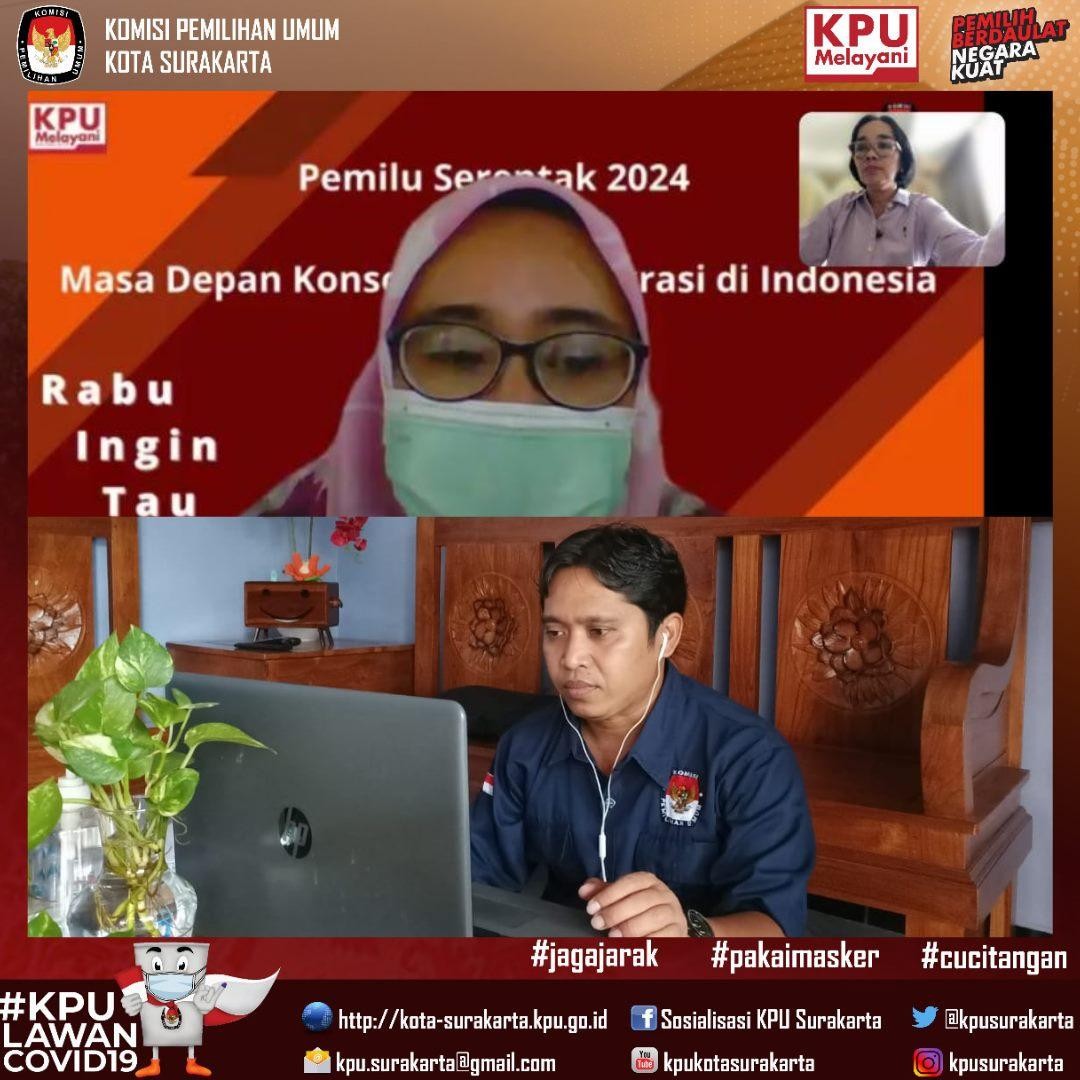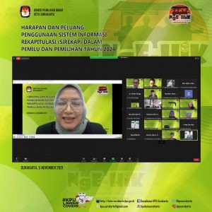 Menu NgE-HIK bareng KPU Kota Surakarta edisi 5 November 2021 kali ini adalah “Harapan dan Peluang Penggunaan Sistem Informasi Rekapitulasi (Sirekap) dalam Pemilu dan Pemilihan Tahun 2024”. Ngobrol Enak Hidangan Informasi Kepemiluan yang masih dilakukan secara virtual ini menghadirkan nara sumber Peneliti Senior Netgrit dan Presidium Nasional Jaringan Demokrasi Indonesia, Hadar Nafis Gumay. Keyonote Speaker yaitu Divisi Teknis Penyelenggaraan KPU Republik Indonesia, Evi Novida Ginting dengan dimoderatori oleh Suryo Baruno, selaku Divisi Teknis Penyelenggaraan KPU Kota Surakarta.
