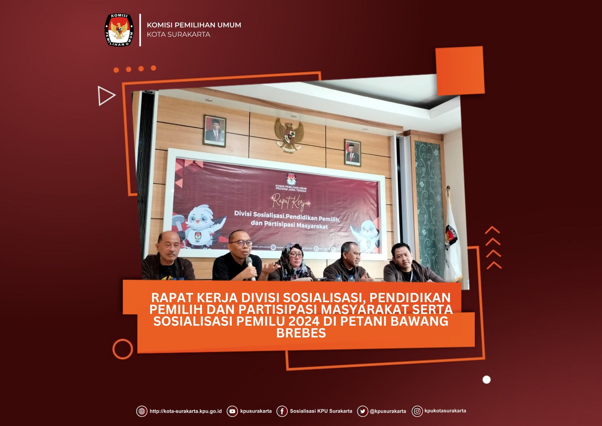 KPU Kota Surakarta diwakili oleh Divisi Hukum dan Pengawasan, Bambang Christanto, Kasubag TPPPH, Rois Alfianto beserta staf penyelenggara Subbagian TPPPH. Narasumber yang dihadirkan dalam kegiatan ini yaitu Masurin selaku Divisi Hukum dan Pengawasan KPU Kabupaten Buton Tengah, Ika Andreias Tuti selaku Divisi Hukum dan Pengawasan KPU Kabupaten Tegal, dan bertindak sebagai pemantik diskusi yaitu Asril, selaku Divisi Hukum dan Pengawasan KPU Provinsi Sulawesi Tengah. kegiatan rutin ini dibuka oleh Mey Nurlela, S.S,M.Si anggota KPU Provinsi Jawa Tengah Divisi Sumber Daya Manusia, Penelitian, dan Pengembangan.