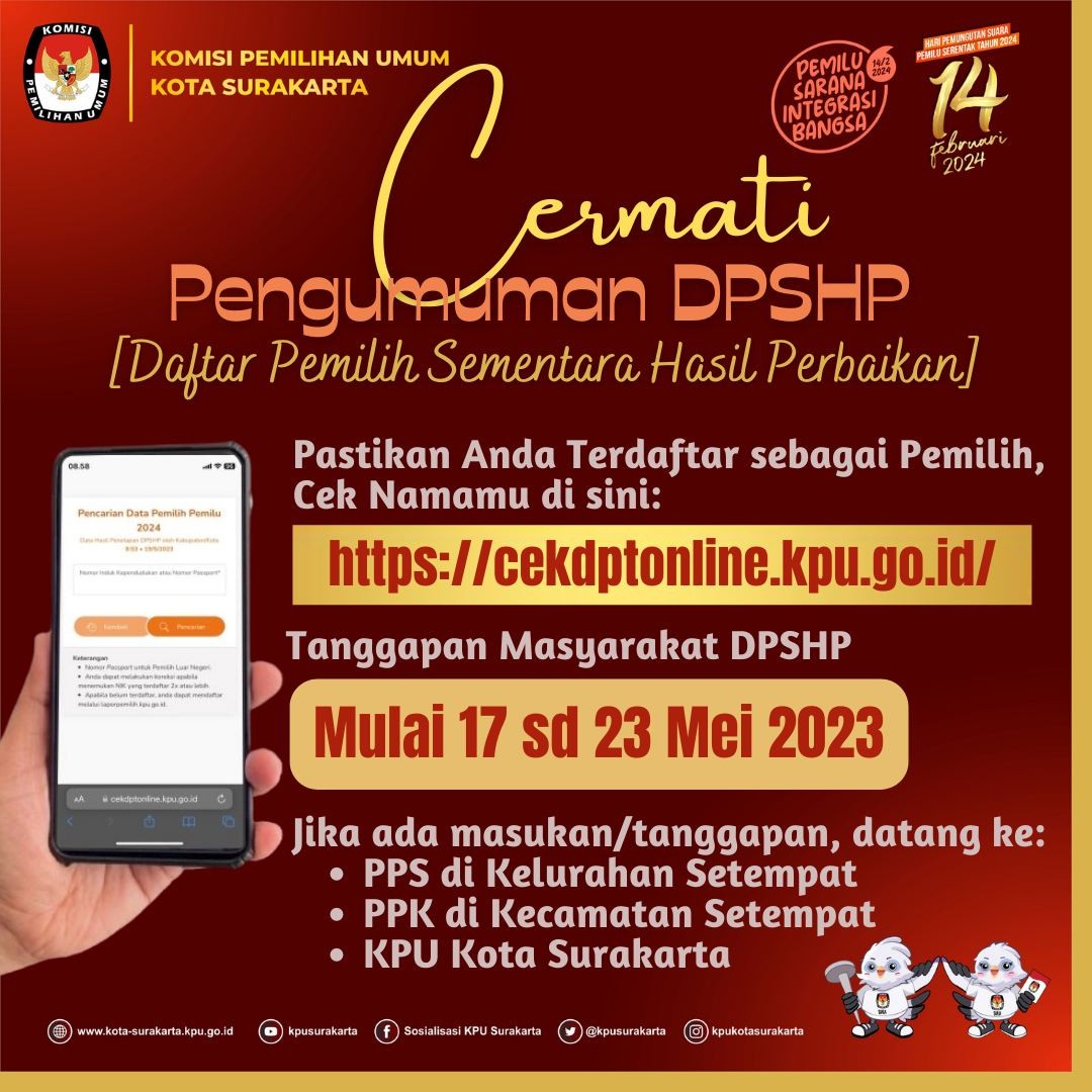 Yuk, pastikan kalian sudah terdaftar sebagai Pemilih pada Pemilu Serentak 2024, dengan cara klik cekdptonline.kpu.go.id atau melihat langsung di papan pengumuman yang ditempel oleh PPS di sekitar tempat tinggal kalian, Jika Kalian belum terdaftar hubungi PPS, PPK, atau KPU Kota Surakarta.