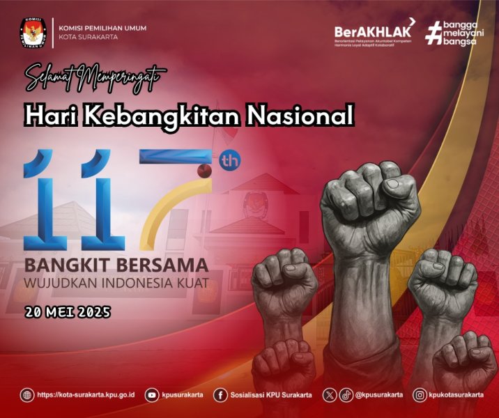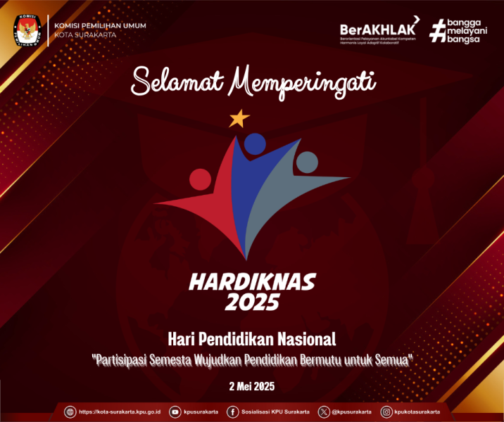 KPU Kota Surakarta mengucapkan Selamat Memperingati Hari Pendidikan Nasional, 2 Mei 2025. "Partisipasi Semesta Wujudkan Pendidikan Bermutu untuk Semua".