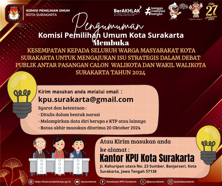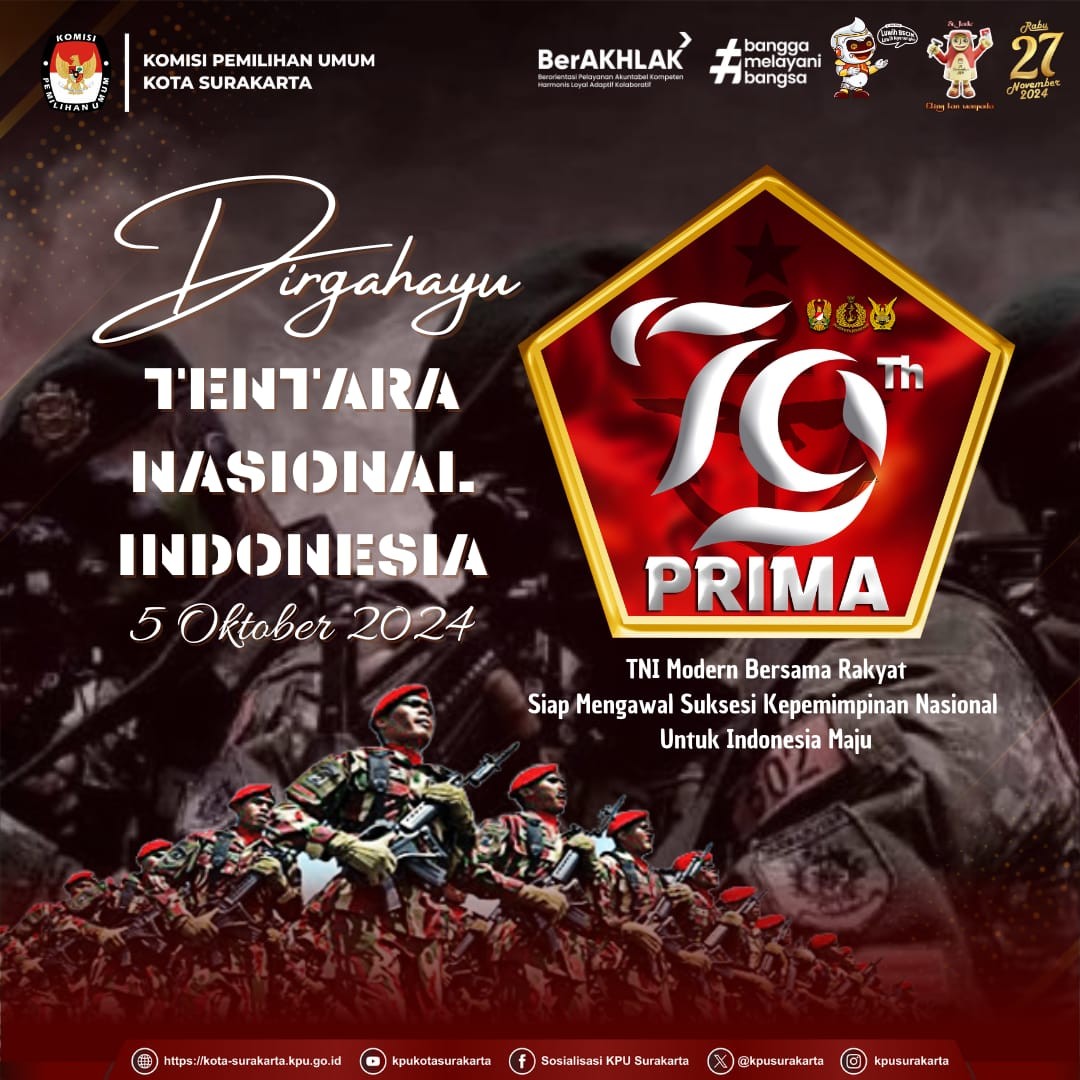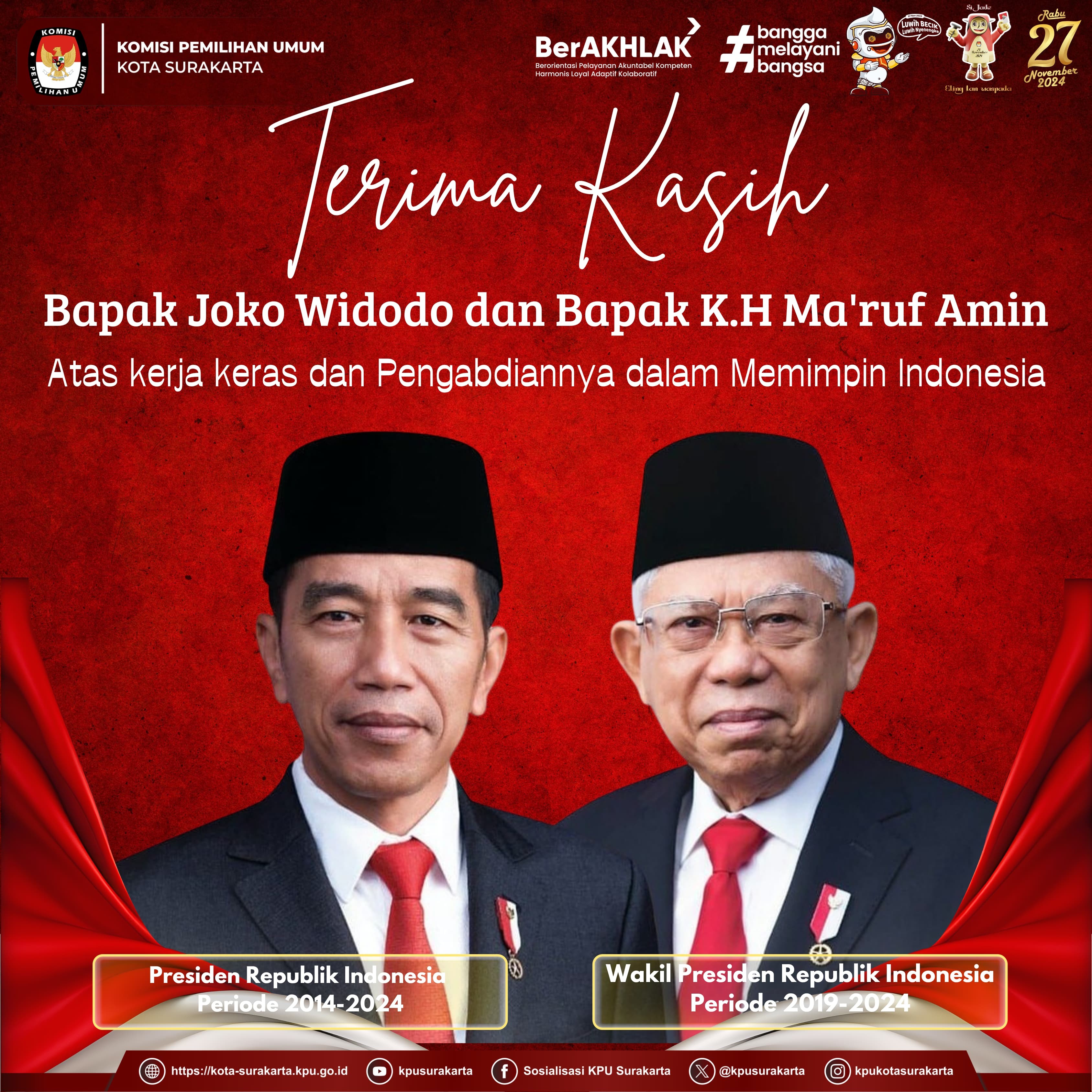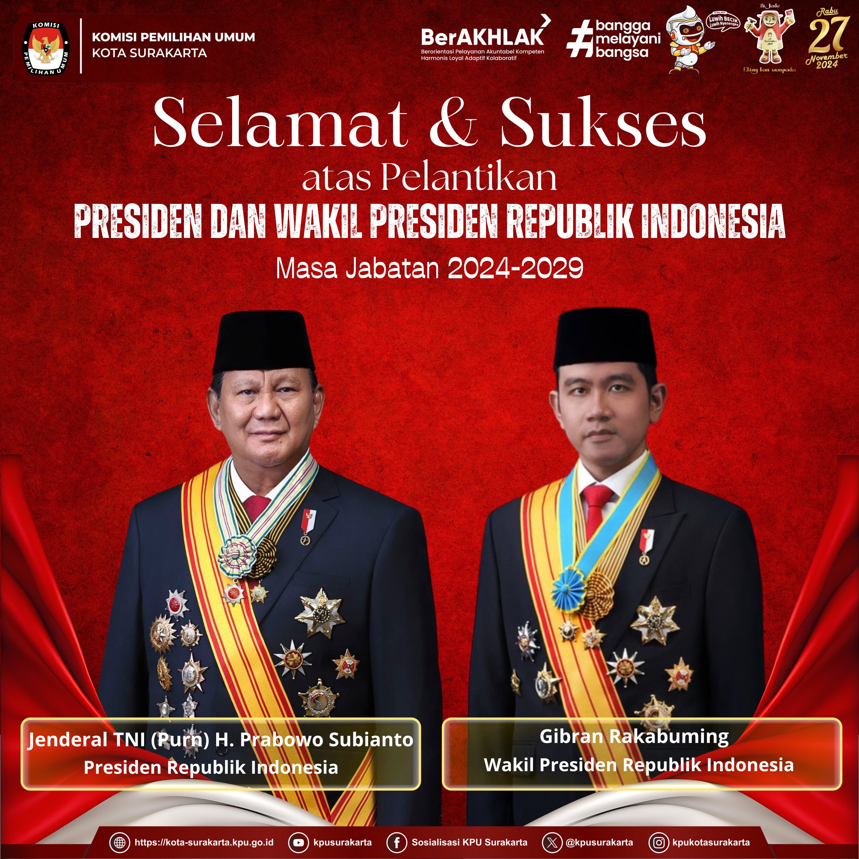 Surakarta, kota-surakarta.kpu.go.id - KPU Kota Surakarta Mengucapkan Selamat dan Sukses Atas Pelantikan Presiden dan Wakil Presiden Republik Indonesia Masa Jabatan 2024 s/d 2029. Semoga Amanah Dalam Mengemban TugasUntuk Bangsa ini. (Ed:Asa/kpusurakarta)