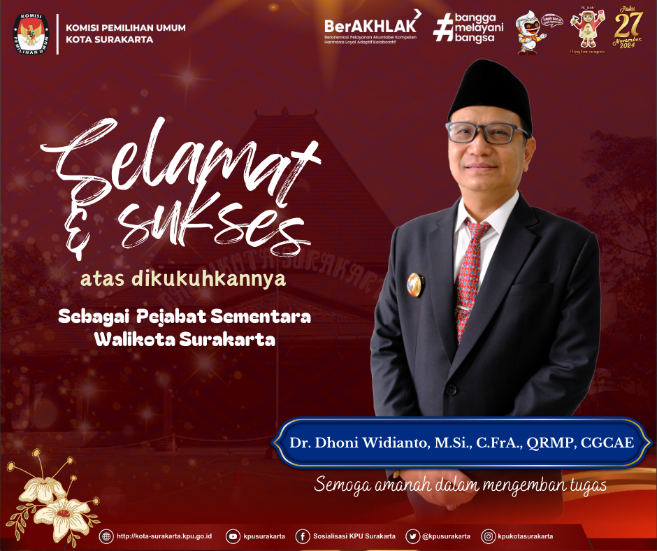 Surakarta, kota-surakarta.kpu.go.id - KPU Kota Surakarta Mengucapkan Selamat dan Sukses Atas dikukuhkannya Pejabat Sementara Walikota Surakarta. Semoga Amanah Dalam Mengemban Tugas. (Ed:Asa/kpusurakarta)