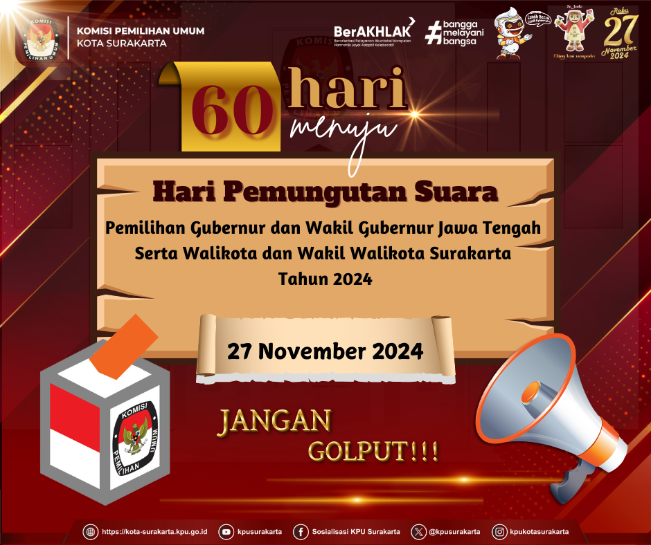 Surakarta, kota-surakarta.kpu.go.id - Hari ini 27 September 2024 merupakan 60 Hari lagi menuju Hari Pemungutan Suara yang jatuh pada, 27 November 2024. (Ed:Asa/kpusurakarta)