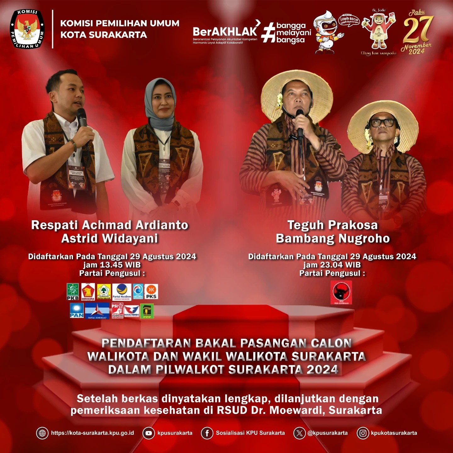 Pendaftaran Bakal Pasangan Calon Walikota dan Wakil Walikota Surakarta Tahun 2024